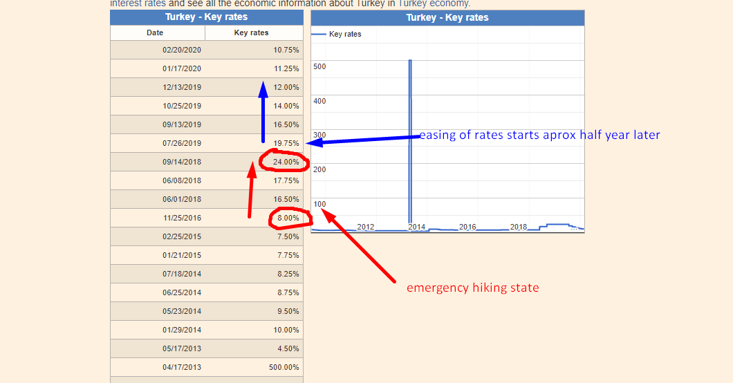 -the emergency rate hike on collapsing currency and rising inflation out of control (Turkish central bank in 2018, Russian central bank in 2014)