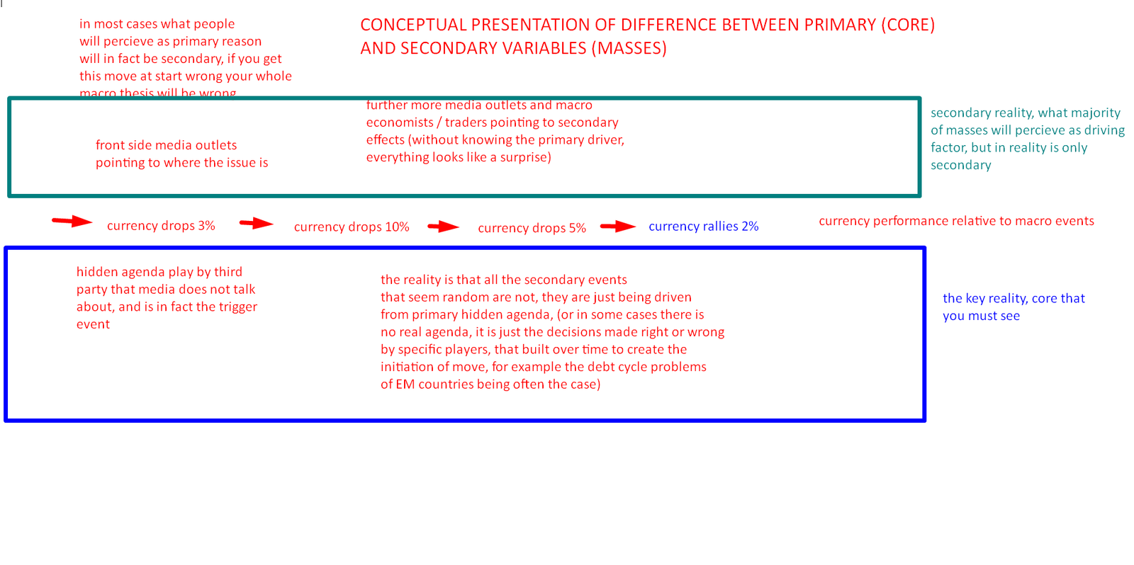Understanding this core mechanism is absolute key to understand the global movements not just in political sense but in sense that relates to anything that eventually touches global capital markets and eventually impacts the way global financial assets trade, especially FX currencies. The currency at its core is reflection of internal decisions of country and the co-existance in world or measured response from outside countries in relation to it. This weights on currency a lot more than just traditional economic variables.