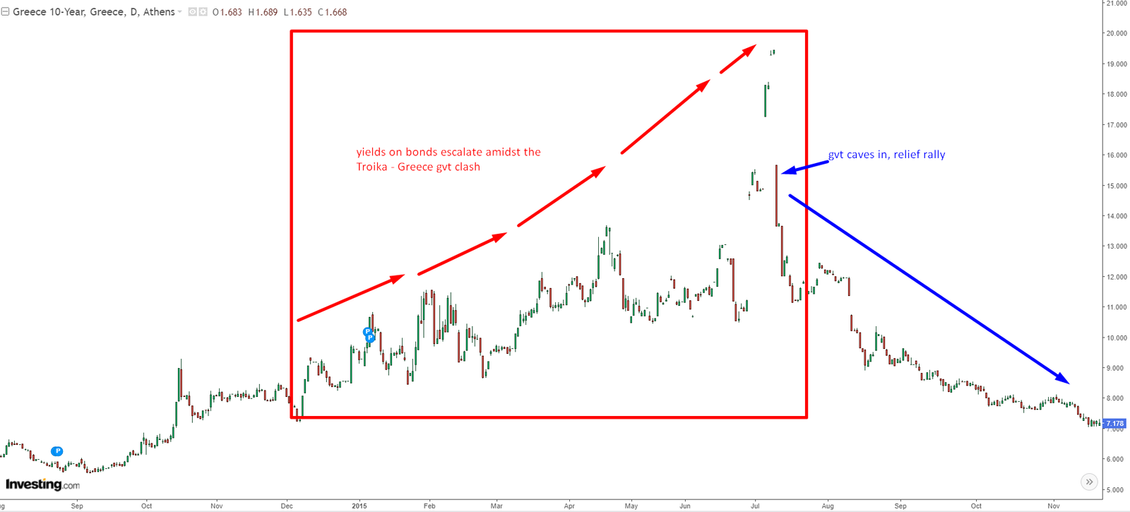 No matter how rational the decisions or demands of Greece government were (or not, depending on who you ask) the actions were all lead by Germany and IMF. It was a perfect example where many macro interpreters were completely lost in the clouds of what could or could not happen, expecting all sorts of Armageddon scenarios of what Greece will do, without actually understand who is the “lead” in the driving seat of the situation. This is a very common problem with macro traders, they mis-understand the power balance between different players, and they come with wrong conclusions of what might or might not be possible. Having realistic view on world, by understanding which player is stronger or weaker in situation is one of the key tools that you need as macro trader, in any situation. The world rotates based on those rules, just as ecosystems in nature do as well.