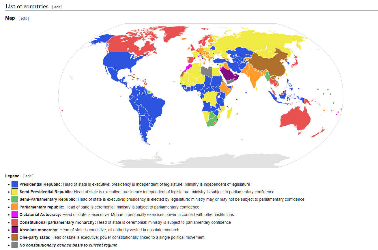 Overall one can list the countries trough entire history on a few simplified spaces: