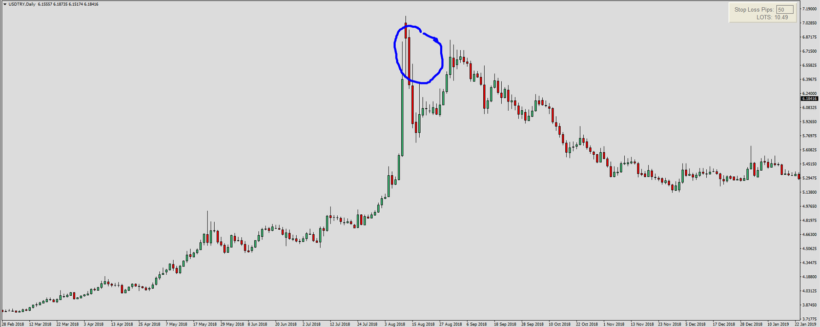 Example of an emergency rate hike by Turkish central bank on the chart below: