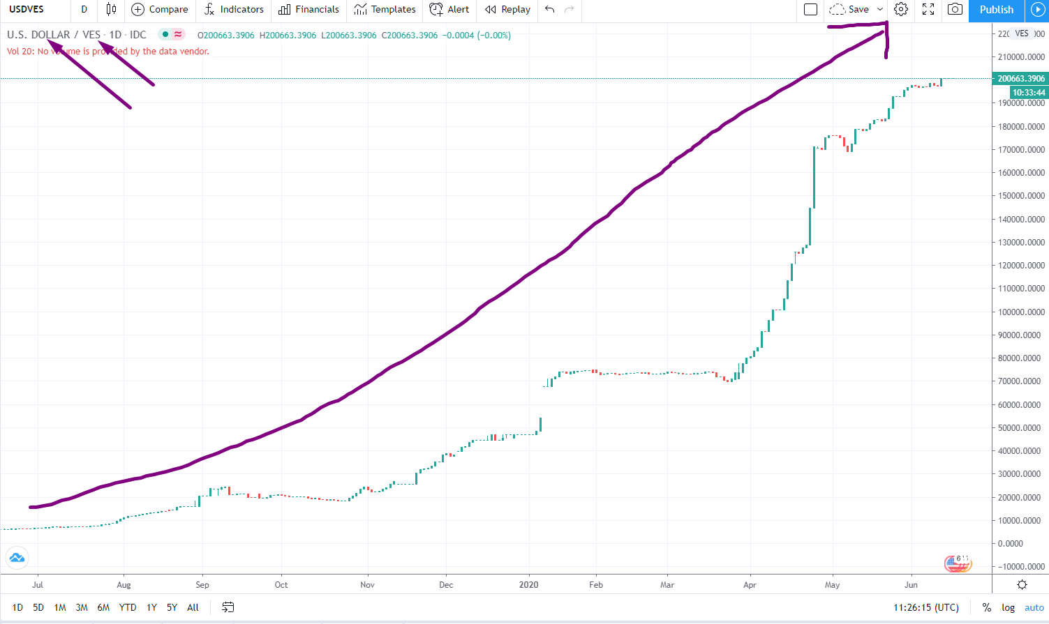 Below is the chart of currency pair performance of dollar versus the Venezuelan peso: