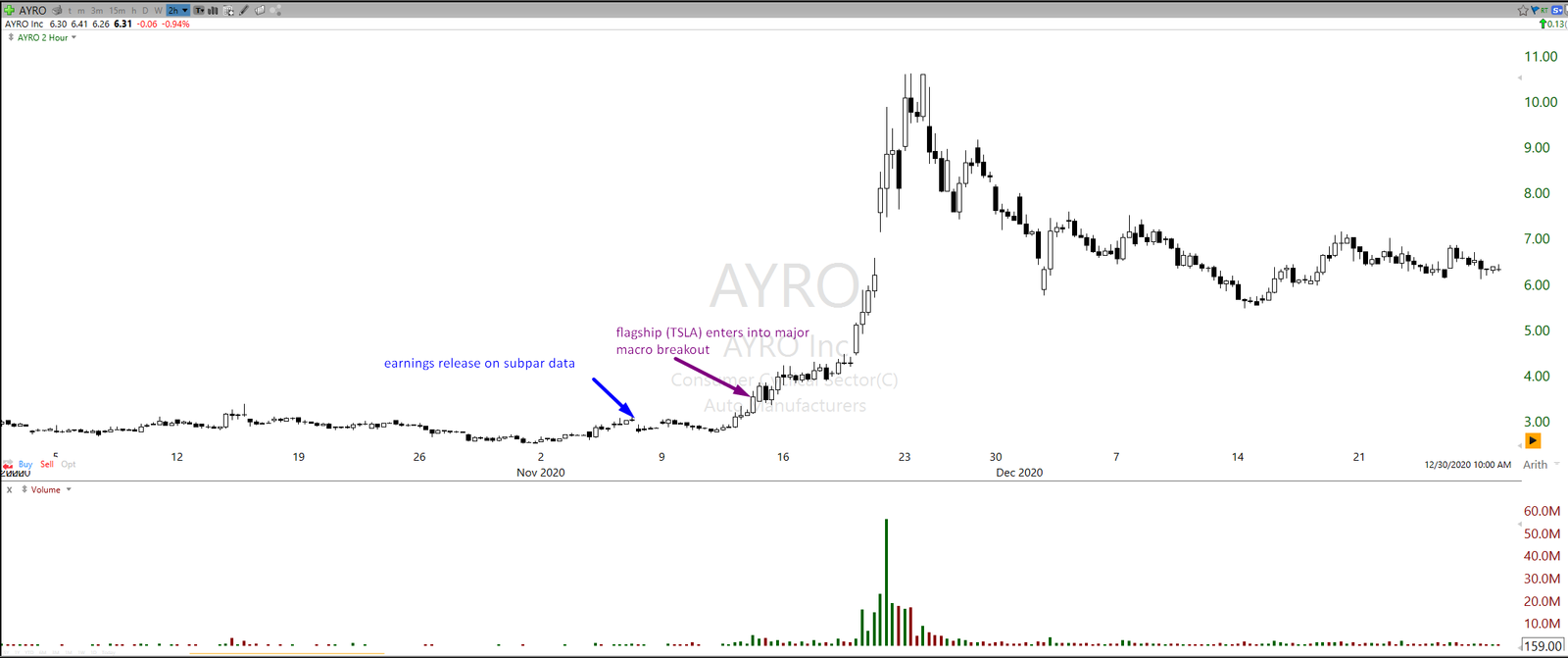To stay on the topic of offerings and dilution news, let’s take another example of dilution on a multiday unwinding ticker where the news hit on the backside. Understanding the structure of news catalysts is often not good enough if one doesn’t have a good enough plan to put it into use. If something is quite obvious about the company and news might be somewhat anticipated by many participants it might be the case that to execute on a news catalyst trader or investor has to front-run the news before it hits, else for different reasons the play might be gone.