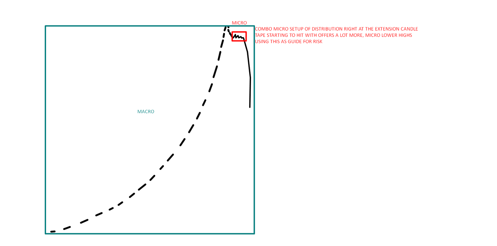 My preference is to use micro-distribution (B grade) or heavy weakness (A grade) as a micro pattern for entry. Example of such pattern combined after the initial parabolic extension candle (conceptually):