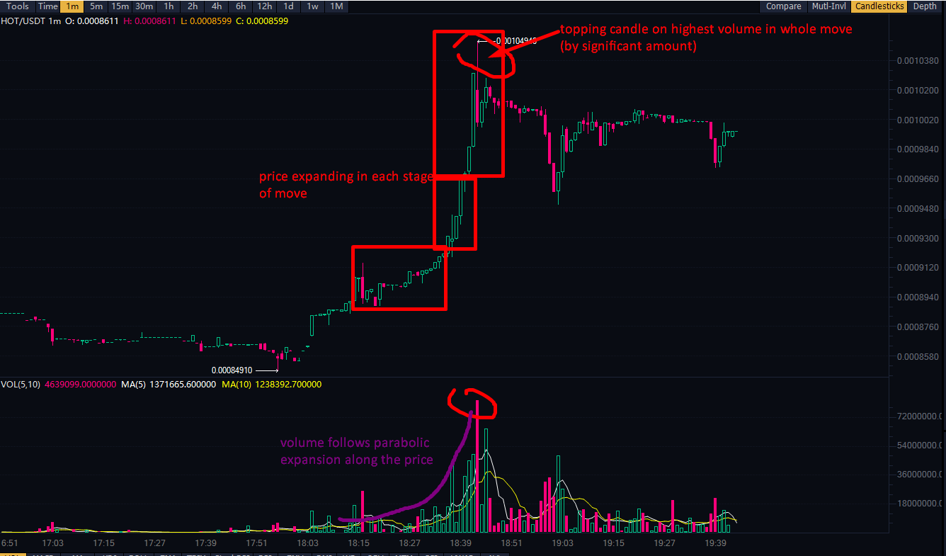 Using the correct time frame plays a vital role in determining if a move is or is perhaps not a parabolic move. And it is all about balance; after all, choosing too high a time frame and any move becomes a vertical linear move or picking too low a time frame, and there are too many candles for a trader to even see where the movement started in the first place. The middle ground is where the proper use will be. However, this will depend a lot on many factors, and there is no specific single time frame that has to be used, as it all depends relatively on how long the whole move takes to develop from base up (in terms of minutes or hours). But a very rough rule that one should follow, to determine curve at least 20 candles should be present in the whole move, that is the bare minimum, but in most cases, the number should be at least 40. Anything under 20 and the move is guaranteed to follow the linear and not parabolic curve in most cases.