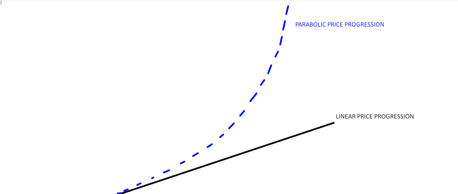 Differences between parabolic/exponential and linear price progression (by judging the curve of price progression) are shown in the images below. The data quantity impacts the ability to define it correctly.