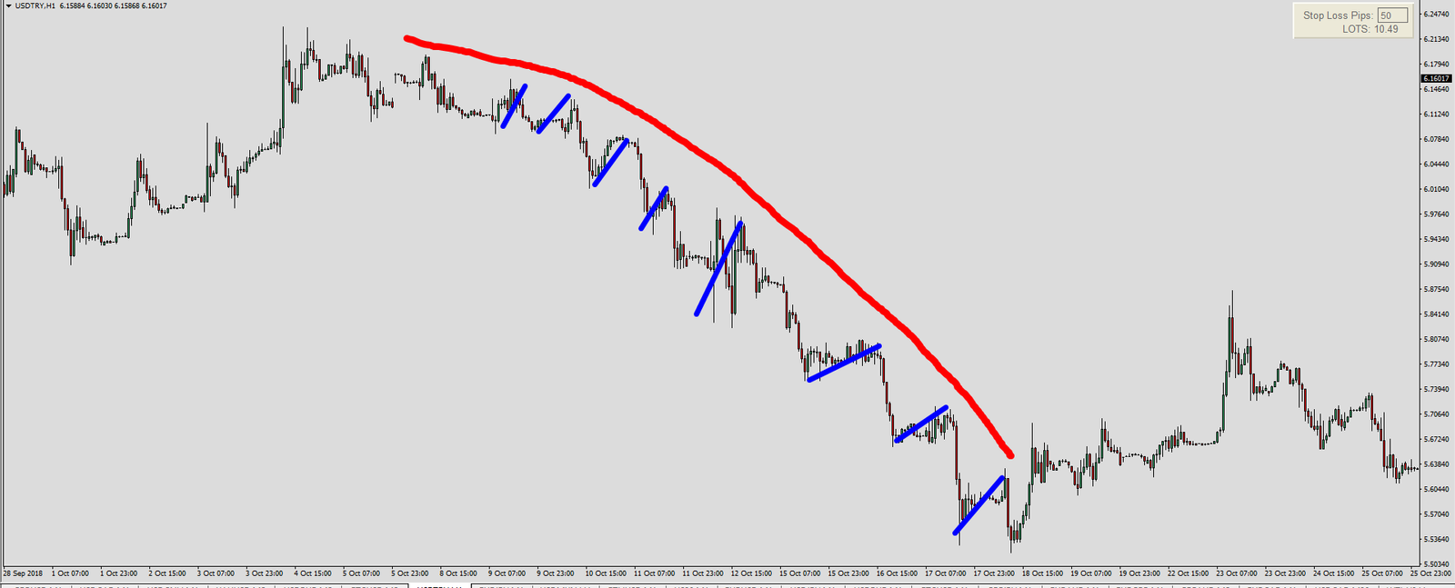 The parabolic move should be progressing with no major retraces within the movement, no deep lows or highs that go counter the whole move. Mind that parabolic move is not just an uptrend or downtrend; it is a very strong progressive move with consistent one-sided candle prints (bull candle after bull candle, for example) and no major deep retraces in between, all the way to the end of the move.