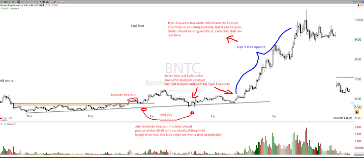 Meanwhile, under weak small cap market cycle it is much more likely to see Type 1 plays going into HOD clearout and pull strongly into a solid deeper fade towards market close hours.