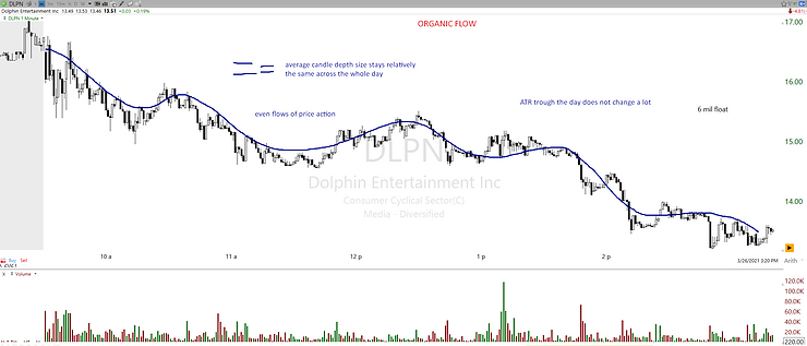 Let’s take quick example of how could price action look on the chart between organic versus non-organic flow on small-cap stock: