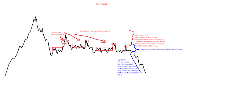 Riggers tend to use this approach by creating chaotic behavior on an asset through the day, which by default places traders into a very uncomfortable and scared mindset (“what is going on?”), and then once the rigger initiates those traders will be more likely to fall prey to the liquidity traps of the rigger.