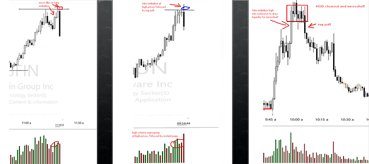 Ideally trader should focus in the early stages on just identifying where the stock’s behavior might be organic or the cases where it might be inorganic (artificial). This is the first step to identify where a large player is/might be controlling the liquidity on the asset, even if the trader is completely unaware of the direction that manipulator might try push the asset to, it is the first foundational piece that one needs to gather, just to tell the difference between organic flow versus non-organic.