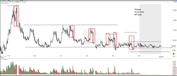 If you would like to check more material about the rigged process on small-cap stocks make sure to check other articles on the blog concerning that theme. Keep a close eye on the most recent tickers, since riggers often like to repeat similar themes or traps within 2 weeks on at least a few tickers. Saving charts of rigged plays is very important, more important than saving / collecting any other patterns/charts in small caps in my view. Saving all day fader chart that drops straight from gates open until the market close will only give you a limited insight on what kind of lesson you can carry on into the future, but a rigged ticker will provide you many more insights and different techniques of not just market manipulations but as well more dynamic asset behavior that is not very black and white (straight up or straight down).