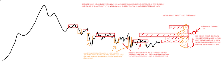 The premise is this: If rigger has absorbed a large amount of liquidity (shares-float) then unloading such position might take a while (30 minutes for example), this means that the tighter towards the market close, the more that unload window for rigger starts to shrink, as the overall activity on ticker drops, longs and shorts pack their bags, the closer it gets to 4 PM. This leads to the fact that especially after 3:30 PM, the chances favor that ticker will push further if it gets into HOD clearout at such a late hour, rather than pushing into clearout and fade straight from there. This should give traders more indication to rather stay away from shorting such clearout and be long biased, or perhaps to short in AH instead (since in many cases they will clear HOD in AH and then dump it from there slowly over many hours).
