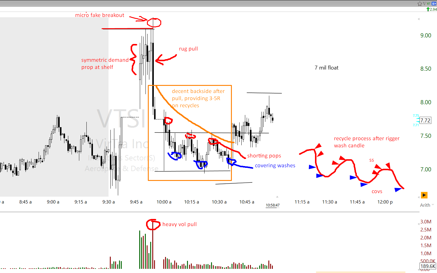 Example of recycle process after fake breakout , flush candle and then recycling for some backside expectation on ticker VTSI: