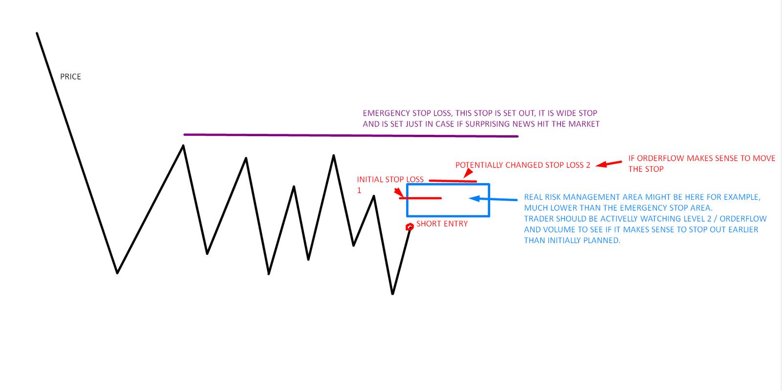 Additionally to that too many traders are too loose on their risk control , having too hands off approach to when it comes setting a stop loss. In my view there are two way trader should manage stop losses on each trade. One is to set fixed “emergency” stop loss, with wider distance in markets that have often surprising catalyst (FX or crypto). Both the actual real stop loss should be managed by trader manually, not by setting just stop loss out and putting hands in pockets and let it turn out. Instead trader should be observing details of price behaviour and orderflow to be more hands on with risk management of the actual stop loss (not emergency top loss).