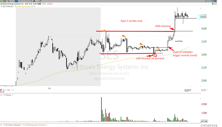 Nearly all Type 1 or Type 4 clearouts share one common variable: 50+% move on a day. If a short squeeze makes sense for riggers, then short sellers need to participate, and nothing draws short-sellers together more as the strong % moves do. The stronger the move, the more value thesis-based short sellers will start to participate (over-extended), which is why the trader should start paying attention to potential short traps on the ticker that move strongly through the day and can hold the gains at the demand level relatively well.