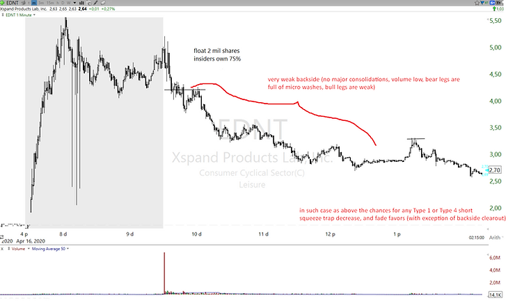 Below is another example of scenario 1 where the ticker has a solid backside, and any chances for Type 1 or other short squeeze attempts are slim. This is basically a decent way of how traders can reverse-engineer counter variables and stick in short positions longer as squeeze chances are smaller if Type 1 variables are highlighted.