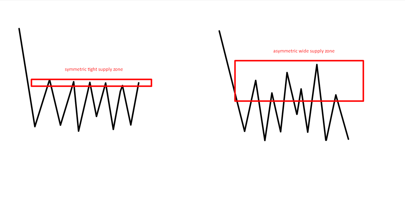 Below is the conceptual presentation of symmetrically distributed supply on the left, and on right side example of asymmetrically distributed supply: