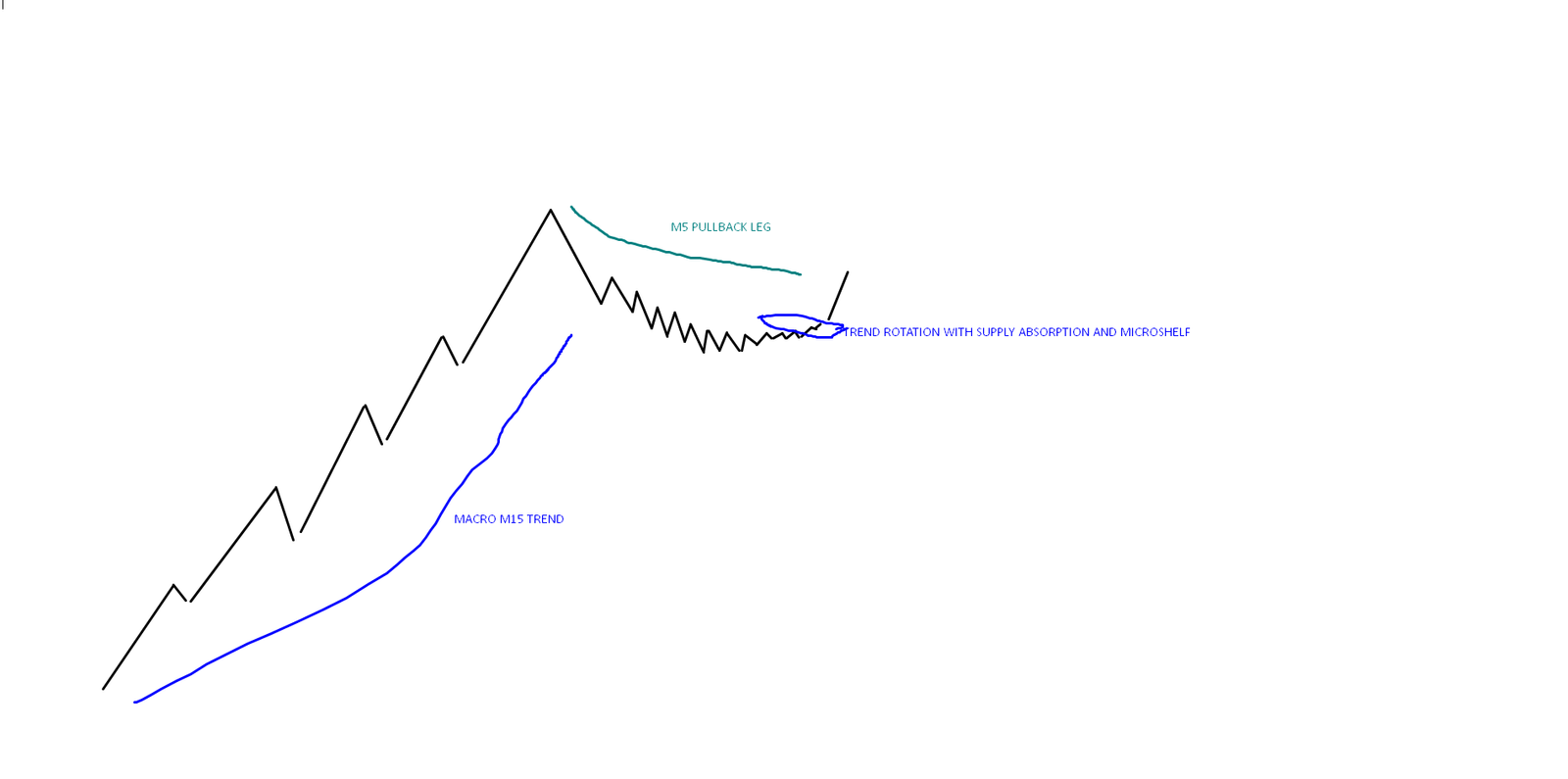 Microshelf around supply level in a clear downtrend will often be the sign of rotation, as buyers aggressively absorb the offers at a higher price. Notice how symmetrically the downtrend is progressing in the example below. Those kinds of examples are what traders should be patient and wait for as such samples behavior change with micro shelf stacks will be more clearly visible and action on Level 2 / tape.