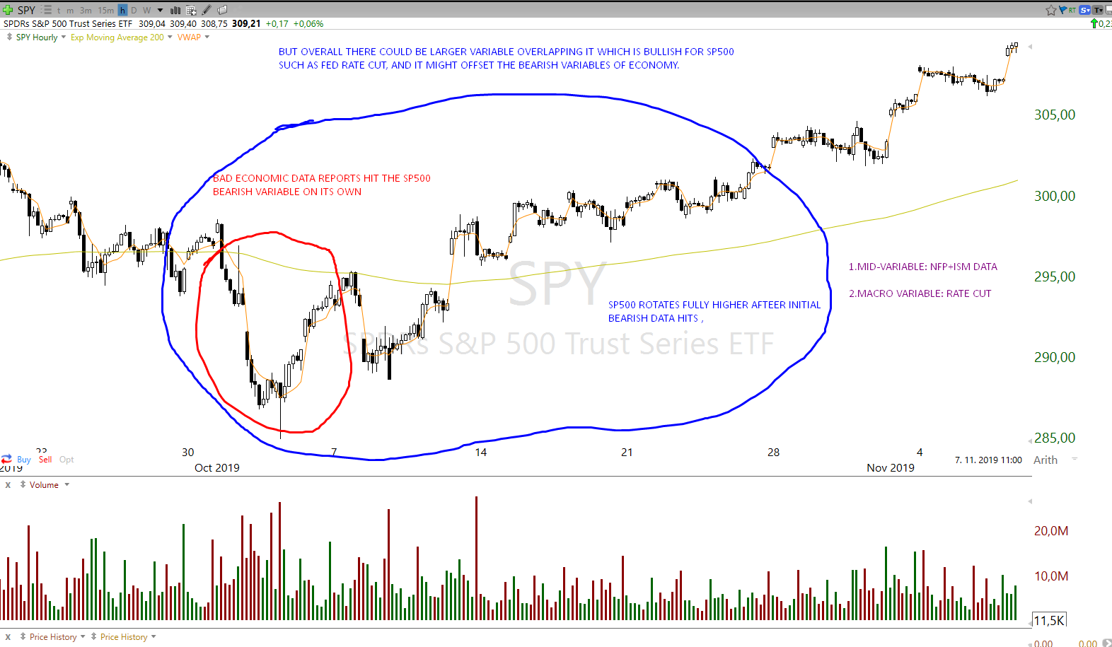 Bellow is outlined example of bearish economic data reports on US economy (early-late October), especially ISM manufacturing report and NFP employment report, both of which came short of expectations, putting them as bearish variables if the variable is isolated.