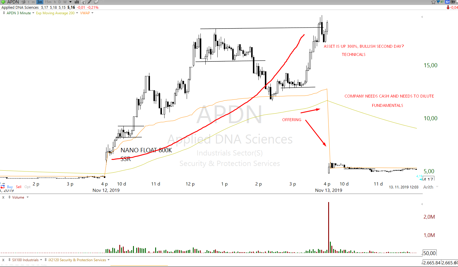Example of ticker APDN, if trader is isolating variables there might be wrong conclusion. But with combining the right variables the bearish case might be better fit than bullish thesis, relative to few days as time frame.