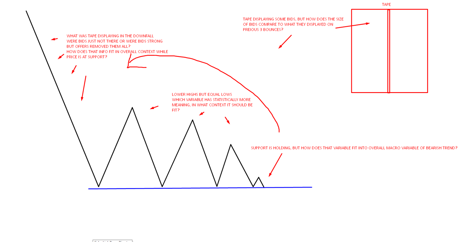 Out of all indicators or variables used in trading, the tape might be the most confusing one. It takes the longest to build the right context view on it. Fitting what you see on tape in right context can be huge help, but statistically it is likely that in 99% cases you do not see anything specific on tape, only in 1% cases you do. That is normal, because there are many asymmetric flows on asset trough the day.