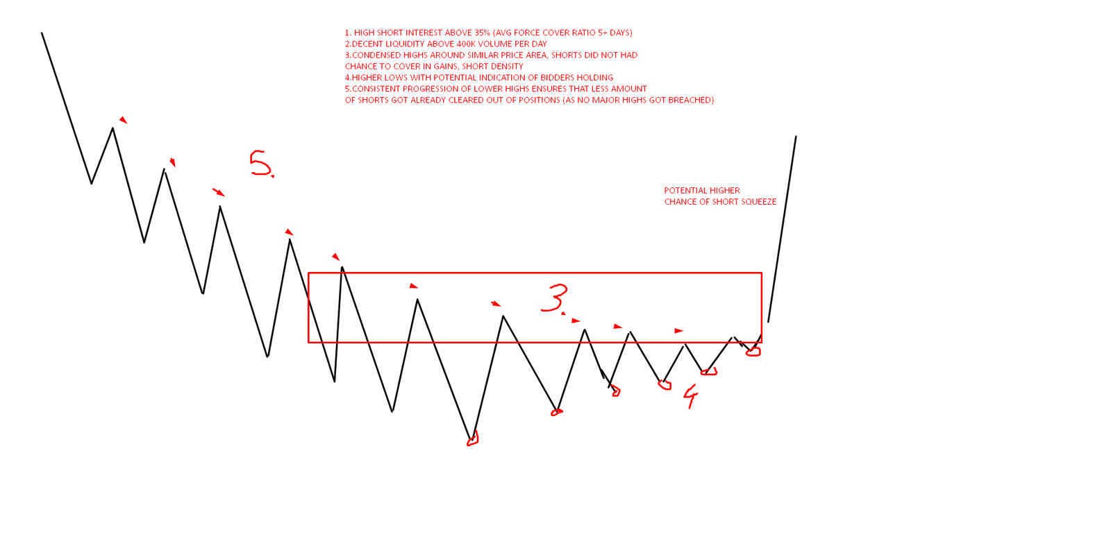 Conceptual example of macro trend with higher short squeeze chances: