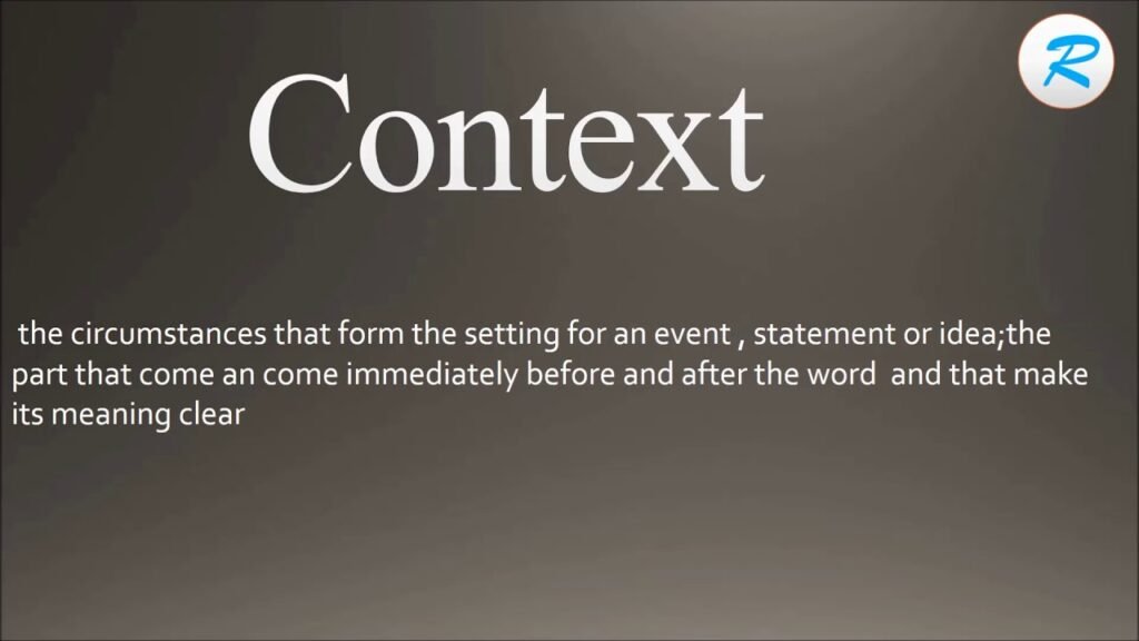 – the parts of a sentence, paragraph, discourse, etc. immediately next to or surrounding a specified word or passage and determining its exact meaning: to quote a remark out of context the whole situation, background, or environment relevant to a particular event, personality, creation, etc.